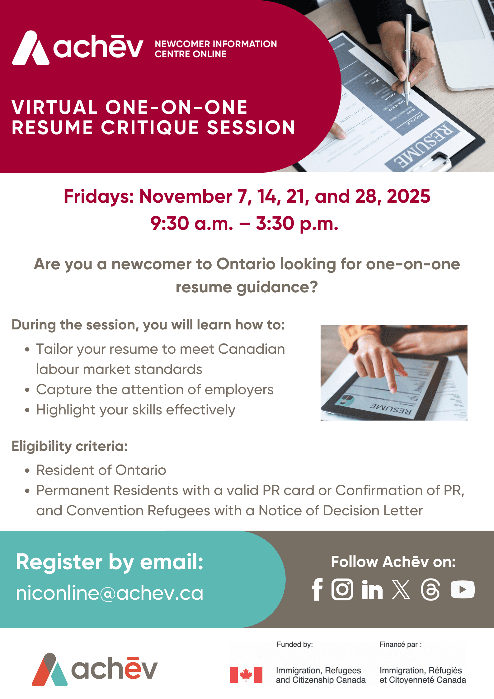 Are you a newcomer to Ontario looking for one-on-one resume guidance?